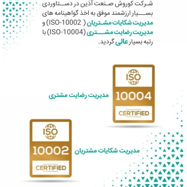 شرکت کوروش صنعت آذین در دستاوردی بسیار ارزشمند موفق به اخذ گواهینامه های مدیریت شکایات مشتریان(ISO-10002) و مدیریت رضایت مشتری(ISO-10004) ... اطلاعات بیشتر